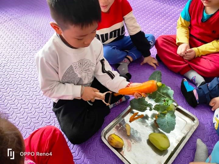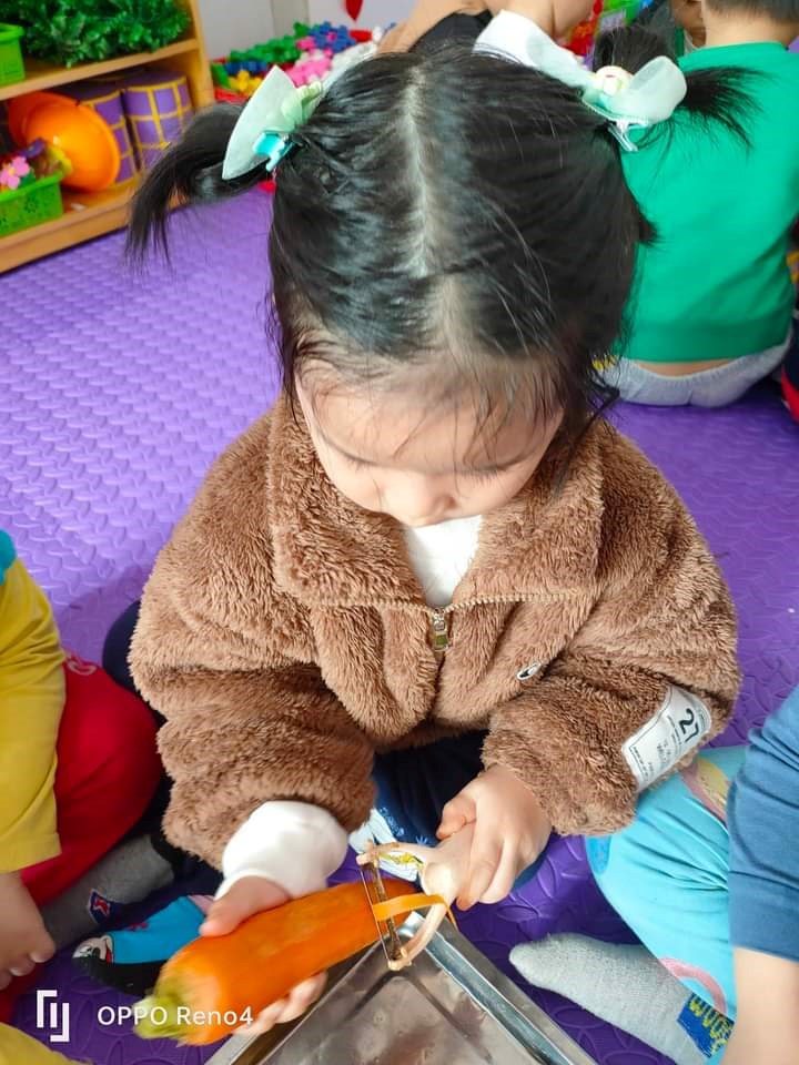 Các bé không chỉ biết được một số kiến thức cơ bản, biết 1 số đặc điểm của các loại rau ăn củ, rau ăn lá, rau ăn quả mà các bé còn có được những trải nghiệm thú vị như nhặt rau, sơ chế rau, củ trước khi nấu.