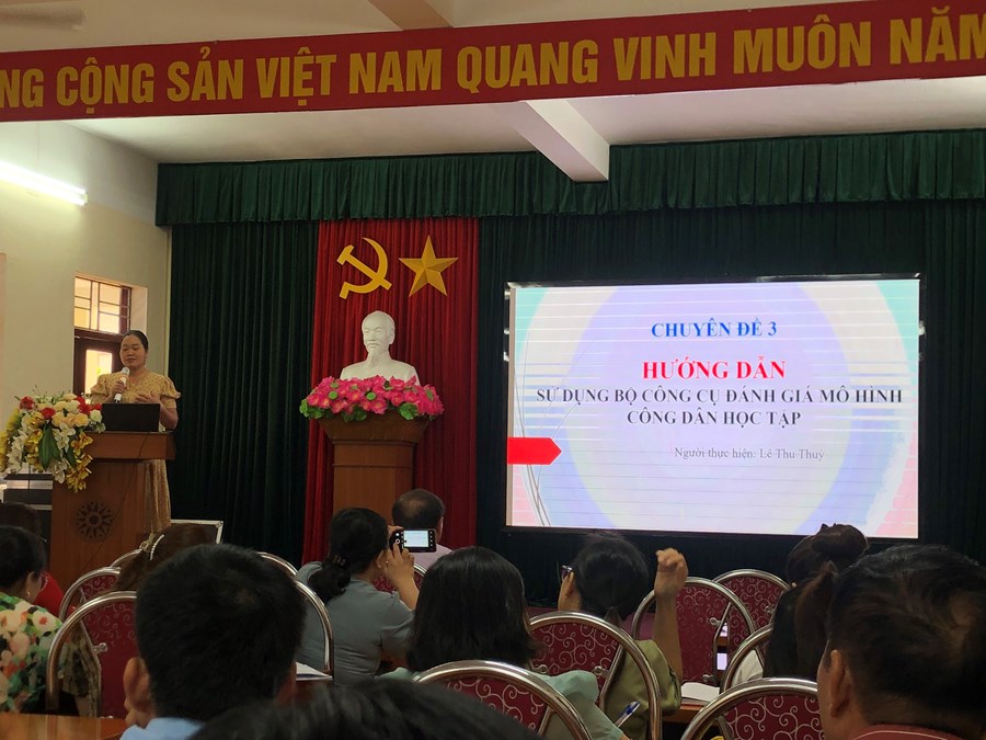 Thành phần tham dự gồm: Lãnh đạo, chuyên viên PGD, chủ tịch Hội Khuyến học, BGH các trường Mầm non, Tiểu học, THCS trong quận.