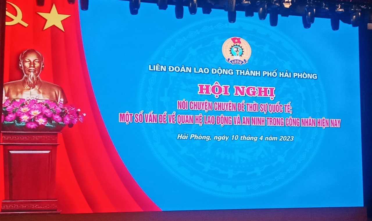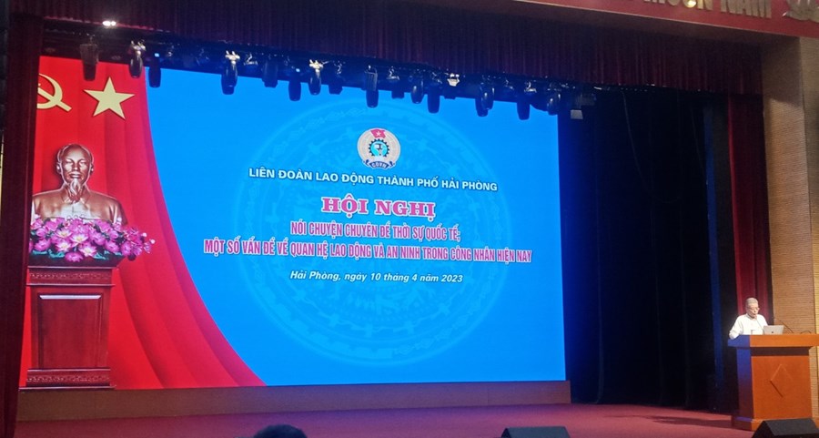 Chiều ngày 10/4/2023. Liên đoàn LĐ TP Hải Phòng tổ chức Hội nghị nói chuyện chuyên đề thời sự Quốc tế và một số vấn đề về quan hệ lao động và An ninh trong công nhân Việt Nam