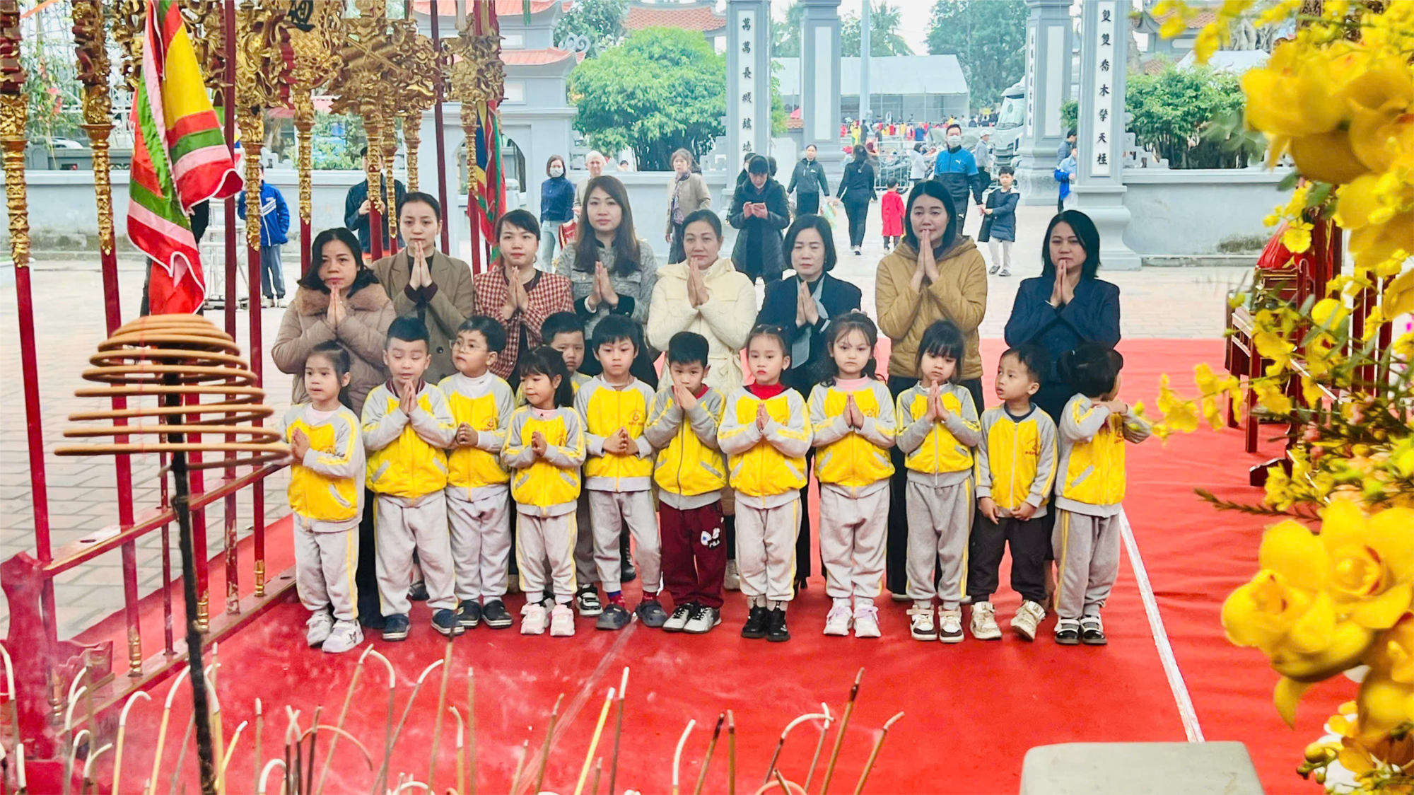 🌻🌻🌻Ngày 14/2/2025, đại diện Cán bộ, giáo viên, nhân viên và học sinh trường mầm non Đằng Hải tổ chức lễ dâng hương tại cụm di tích Từ Lương Xâm kỉ niệm 1087 năm chiến thắng Bạch Đằng và 1081 năm ngày mất của Đức Vương Ngô Quyền.