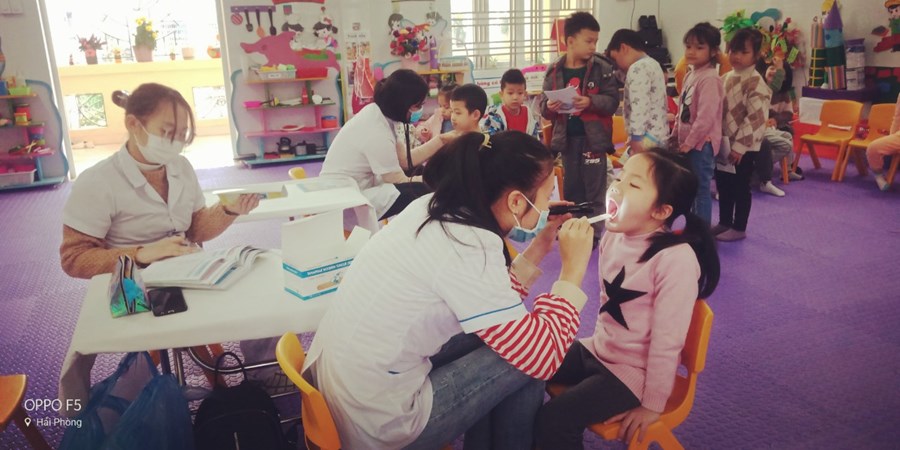 Một số hình ảnh ghi lại được trong buổi khám sức khỏe định kỳ cho trẻ tại Trường MN Đằng Hải
