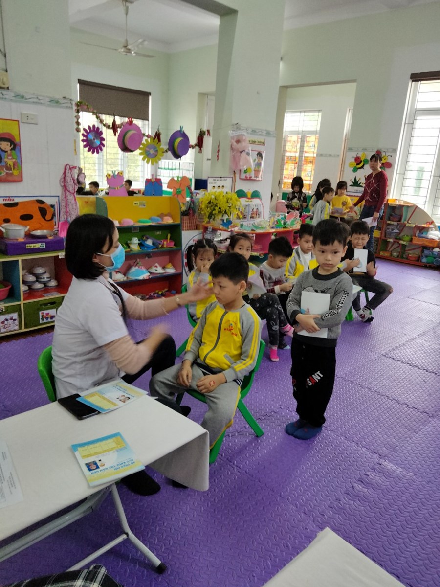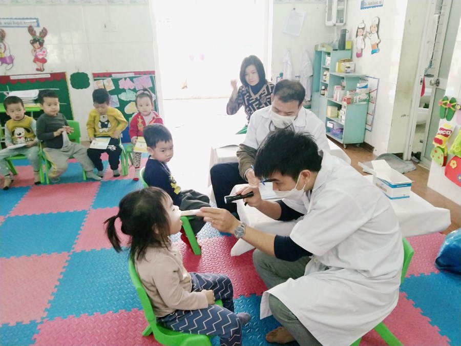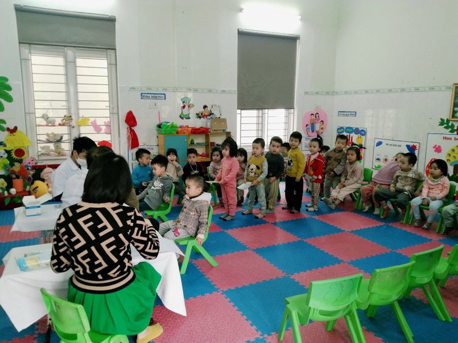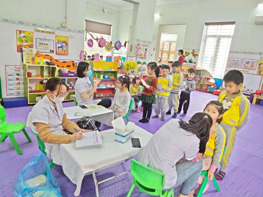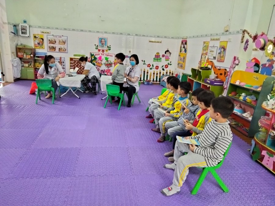 Khám sức khoẻ định kỳ cho trẻ là việc làm hết sức thiết thực và ý nghĩa thông qua việc khám sức khỏe định kỳ cho trẻ đã góp phần không nhỏ vào việc nâng cao nhận thức cho phụ huynh về ý thức phòng chống một số bệnh thường gặp ở lứa tuổi mầm non và cũng qua hoạt động này đã đem lại sự phấn khởi, tin tưởng trong các bậc phụ huynh về một môi trường giáo dục an toàn và thân thiện. Sau một thời gian làm việc nhiệt tình và trách nhiệm cao, 100% trẻ đã được khám sức khoẻ định kỳ.