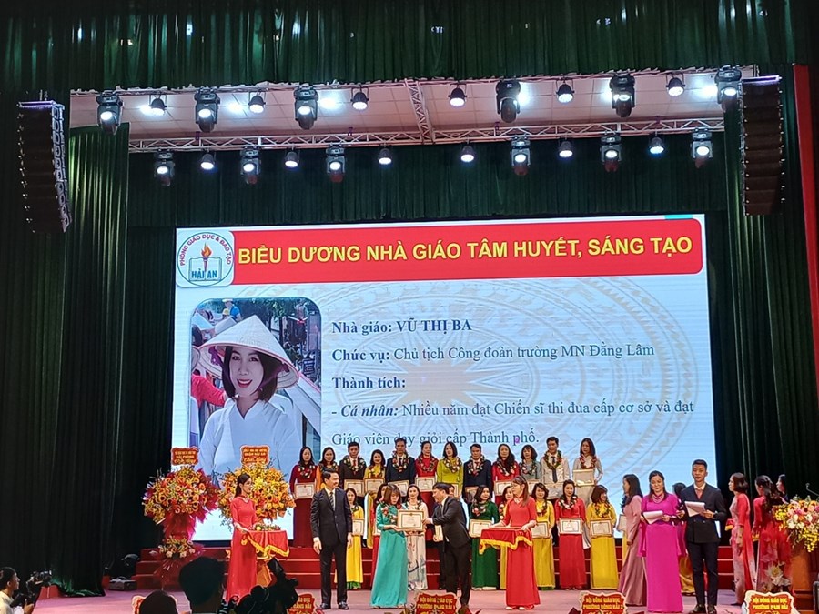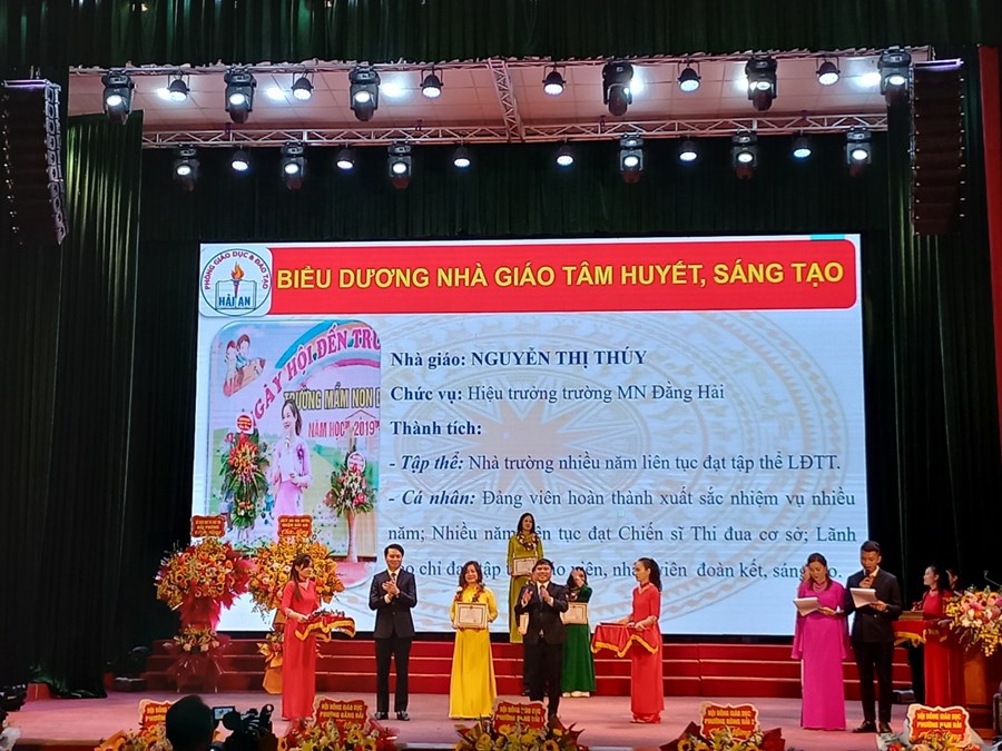 Tại hội nghị, tập thể Trường Mầm non Đằng Hải và cá nhân đồng chí Nguyễn Thị Trăng - Phó Hiệu trưởng nhà trường đã được nhận giấy khen của UBND quận Hải An- đạt thành tích xuất sắc trong thực hiện nhiệm vụ công tác năm học 2021 - 2022;