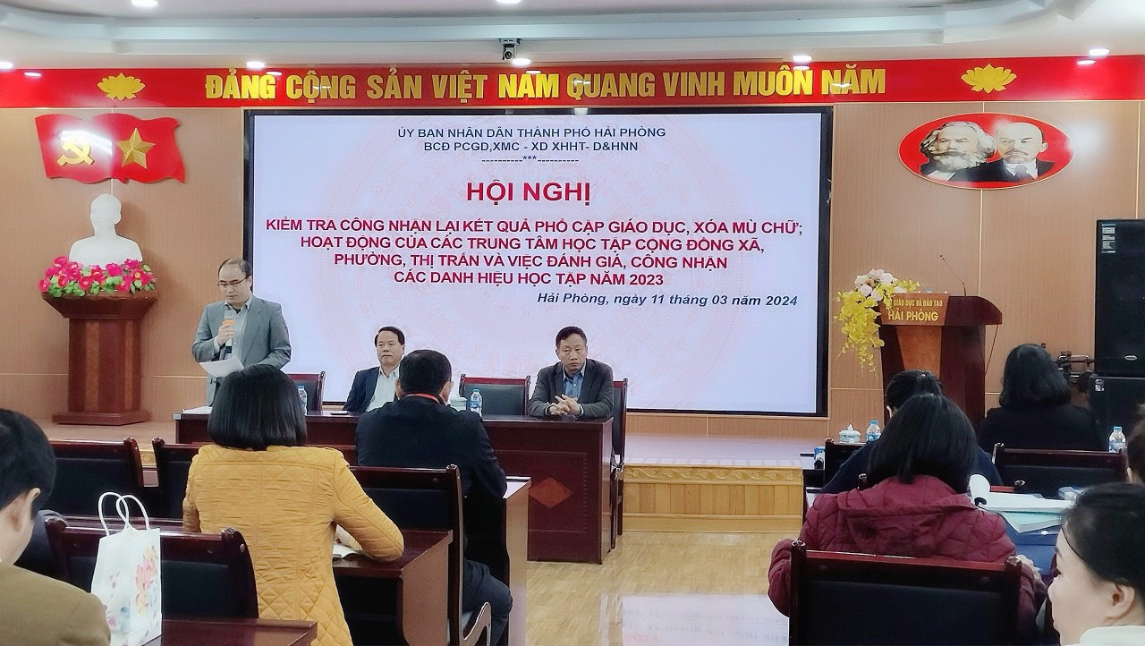 🎋 Thực hiện Quyết định số 244/QĐ-SGD&ĐT ngày 8/3/2024 của BCĐ PCGD,XMC - XD XHHT - D&HNN TP; ngày 11/3/2024 BCĐ PCGD,XMC - XD XHHT - D&HNN TP đã tiến hành kiểm tra kiểm tra công nhận lại kết quả phổ cập giáo dục, xóa mù chữ; hoạt động của các Trung tâm Học tập cộng đồng các phường và đánh giá, công nhận các danh hiệu học tập năm 2023 đối với quận Hải An.