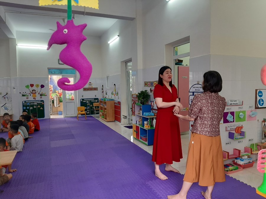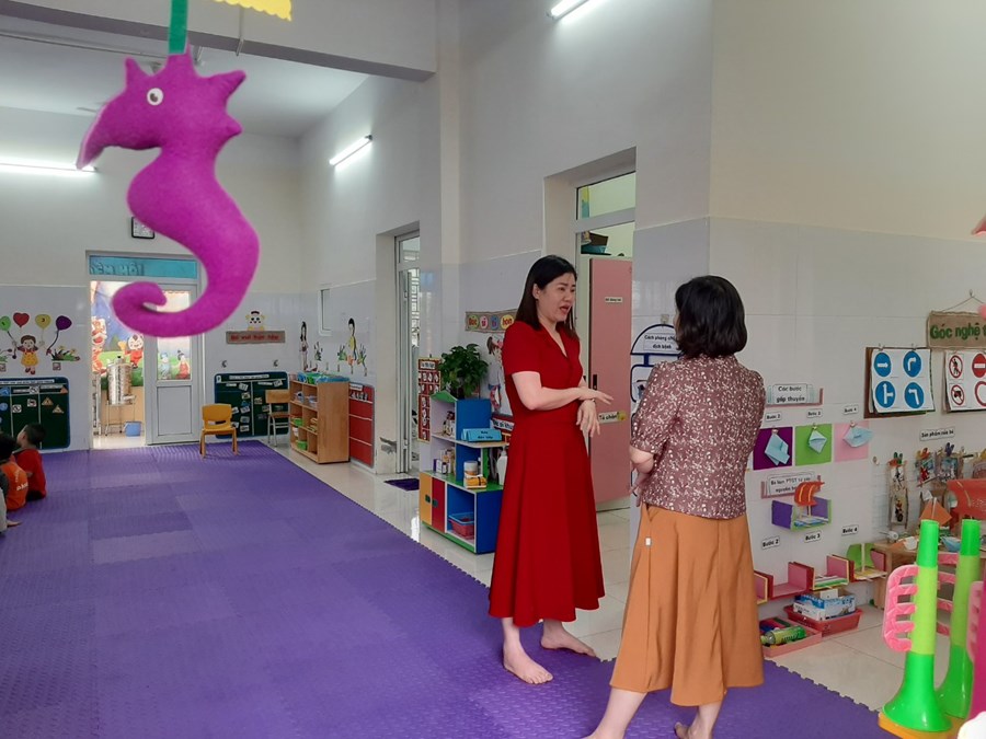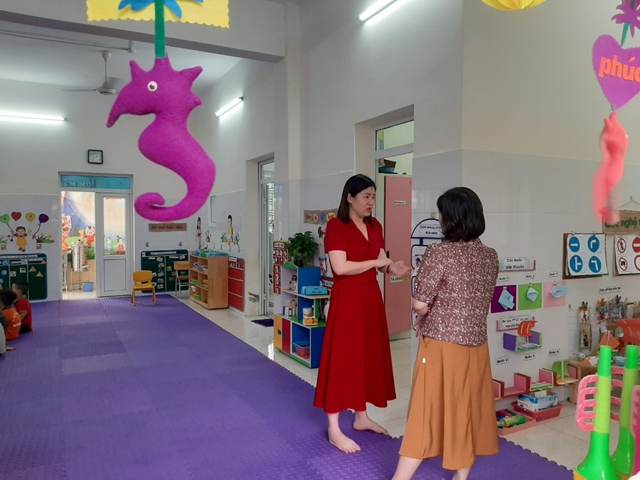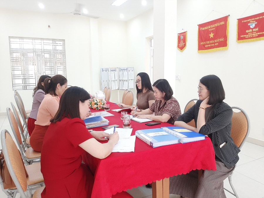 Chiều ngày 13/4/2023 Phòng giáo dục và đào tạo quận Hải an tổ chức đoàn kiểm tra trường học an toàn tại trường MN Đằng Hải.
