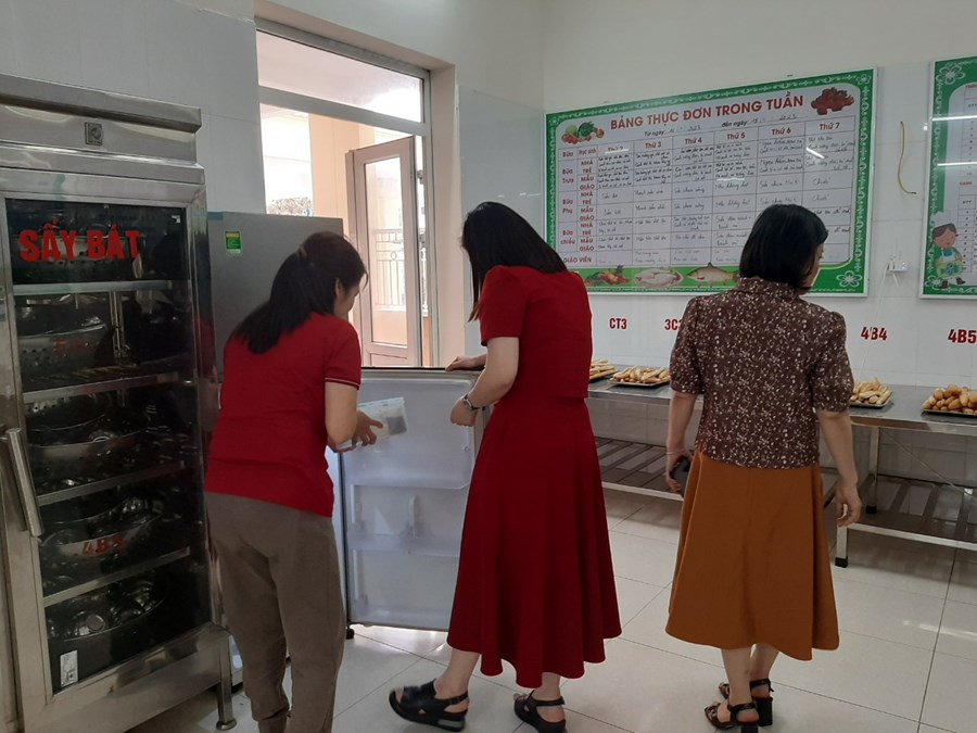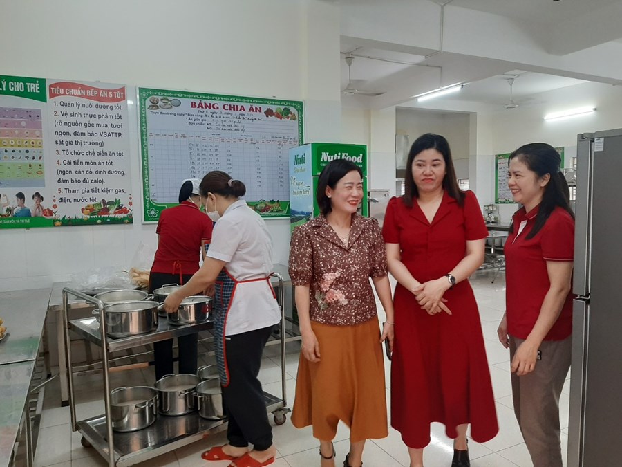 Qua buổi kiểm tra, Đoàn đánh giá: Trường đã chú trọng xây dựng môi trường giáo dục an toàn, thân thiện. Trang thiết bị, đồ dùng, đồ chơi thường xuyên được kiểm tra, bảo dưỡng đảm bảo an toàn cho trẻ khi tham gia các hoạt động tại trường, lớp. Các bếp ăn được bố trí theo nguyên tắc “một chiều”, đảm bảo chế độ kiểm thực 3 bước và lưu mẫu thức ăn theo đúng quy định; các điều kiện về trang thiết bị, dụng cụ như phương tiện rửa tay và khử trùng tay, thiết bị phòng, chống côn trùng, quần áo bảo hộ lao động, trang thiết bị phục vụ chế biến… được đảm bảo.