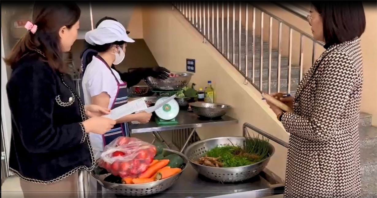 Giao nhận thực phẩm: Giám sát chặt chẽ giao nhận thực phẩm hằng ngày với sự tham gia của nhân viên nuôi dưỡng, đại diện ban giám hiệu, giáo viên, phụ huynh học sinh.