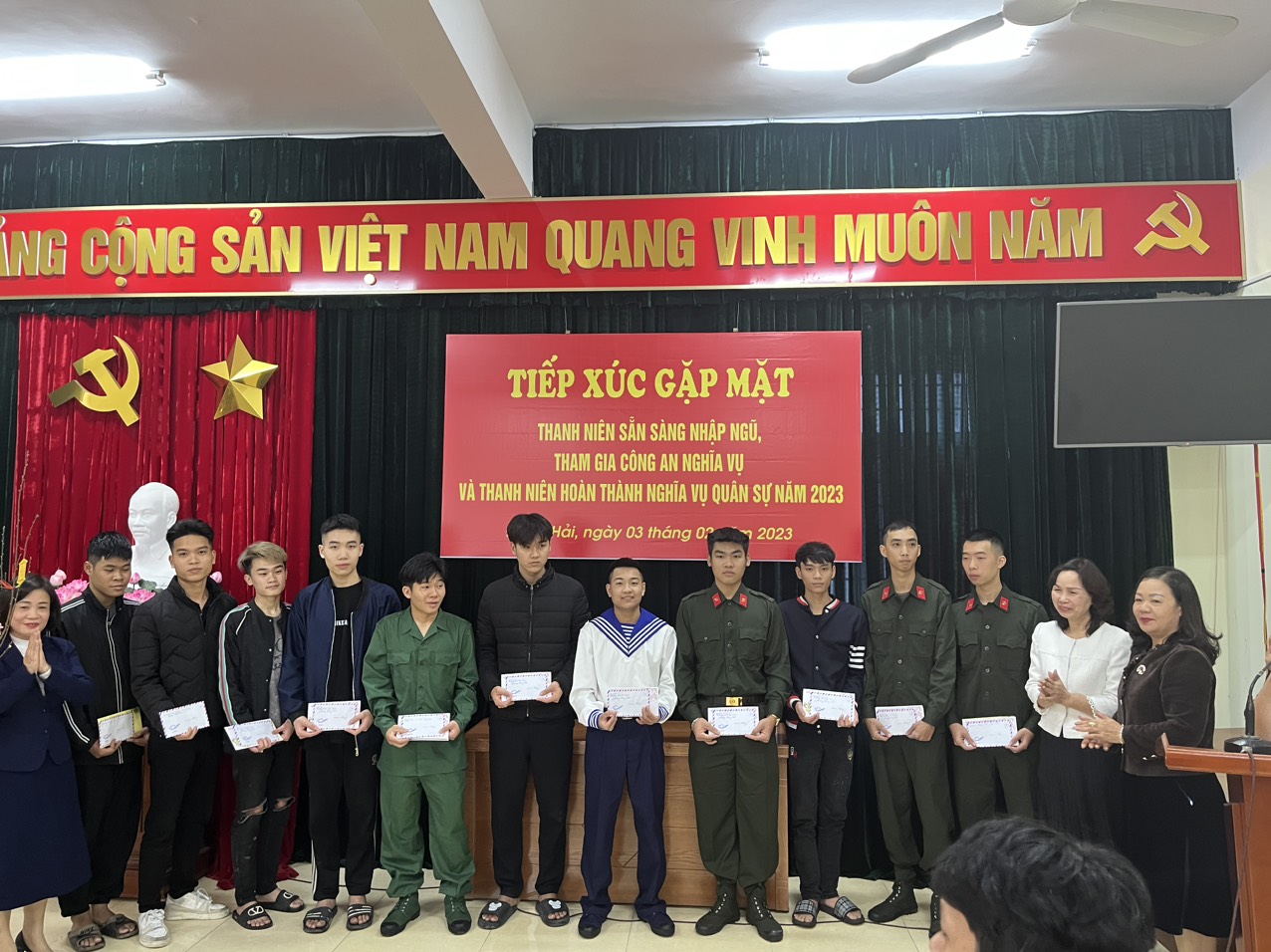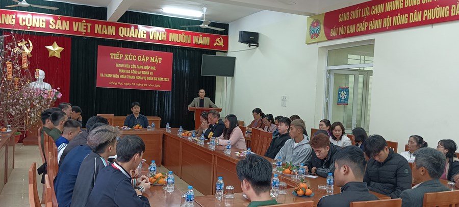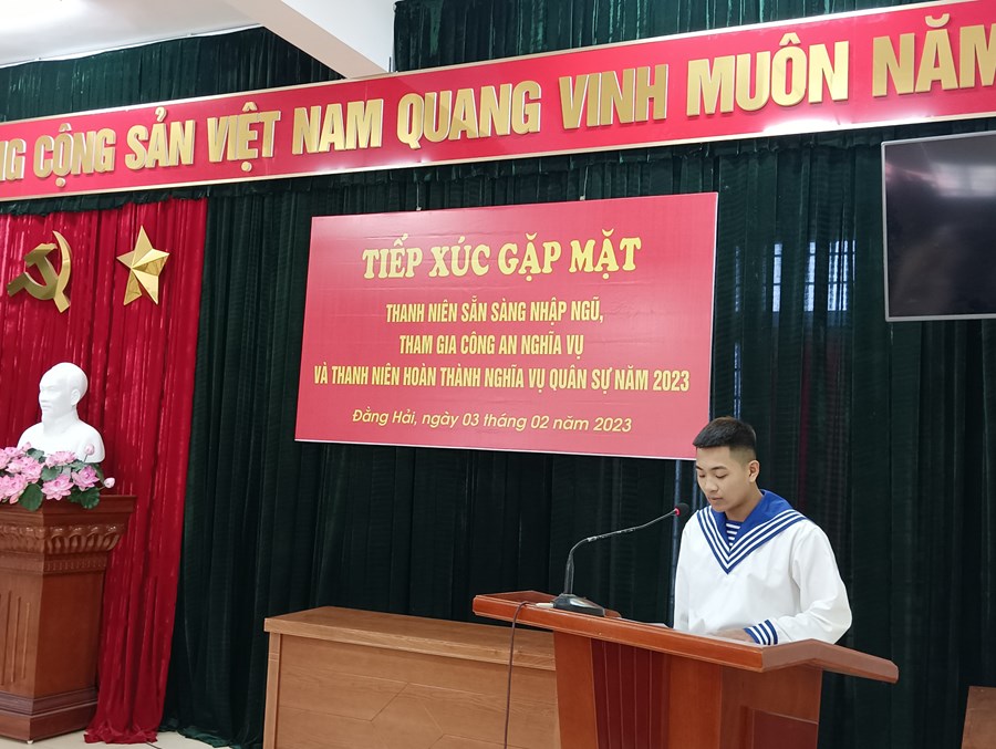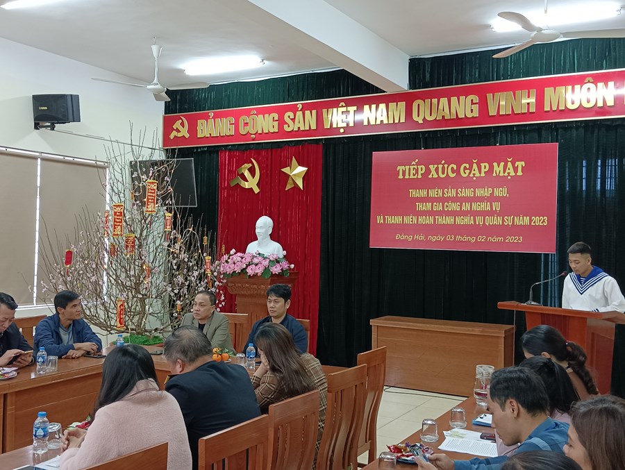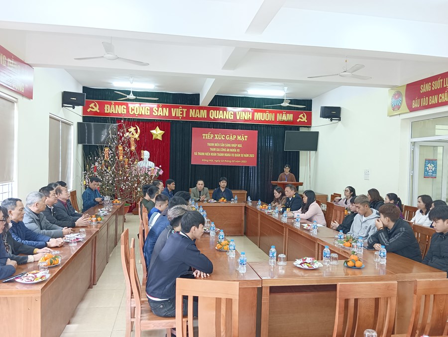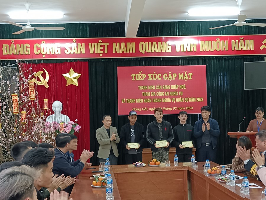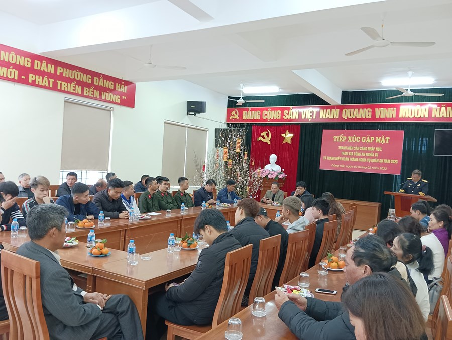 Hòa trong không khí vui mừng phấn khởi của toàn Đảng, toàn quân, toàn dân đang ra sức thi đua lập thành tích chào mừng kỷ niệm 93 năm ngày thành lập Đảng Cộng sản Việt Nam (03/02/1930- 03/02/2023) và ngày hội tòng quân năm 2023. Chiều ngày 03/2/2023 được sự nhất trí của Đảng ủy. Hội đồng nghĩa vụ quân sự phường Đằng Hải tổ chức buổi tiếp xúc gặp mặt, tặng quà Tân binh trước lúc lên đường nhập ngũ.