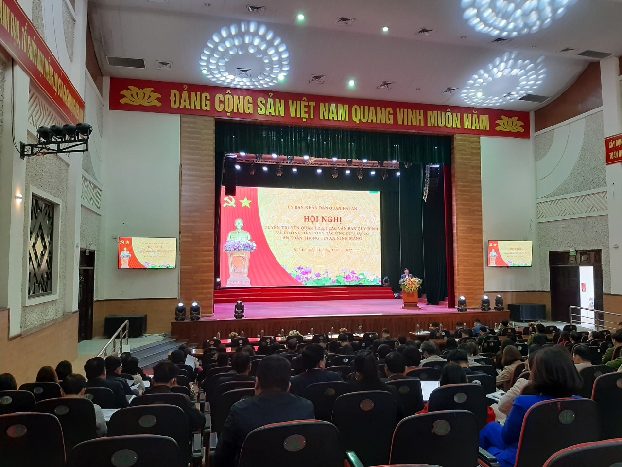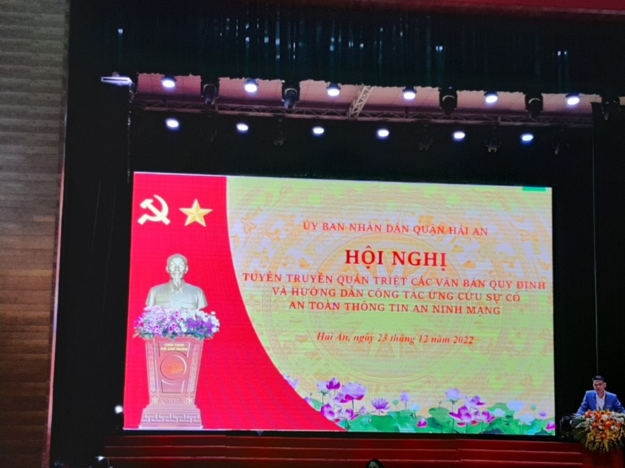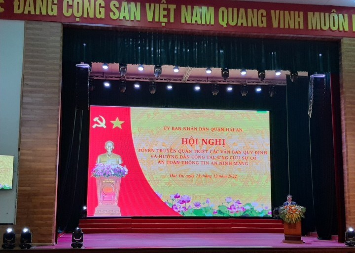 Ngày 23/12/2022 UBND quận tổ chức hội nghị tuyên truyền, quán triệt các văn bản quy định và hướng dẫn công tác ứng cứu sự cố an toàn thông tin, an ninh mạng trên địa bàn quận Hải An.